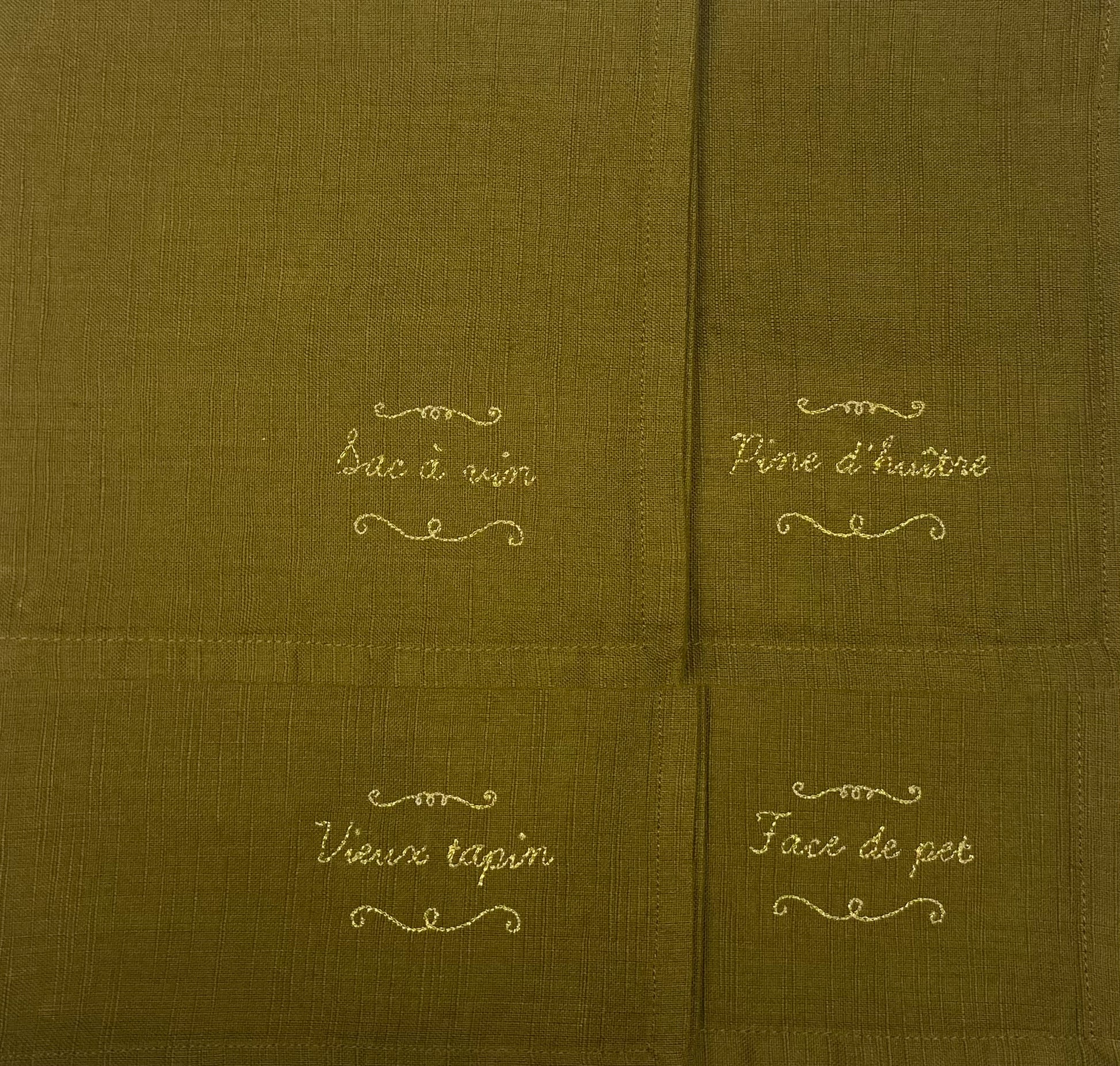 Cushion cover made of hand-woven and indigo-dyed cotton. These vintage West African canvases feature patinas and subtle shades of blue, making them unique. It is embroidered with a pink radiant heart and light green lettering.